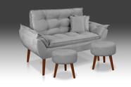 Kit 01 Namoradeira Opala + 02 Puff Redondo +02 Almofadas Suede Cinza Claro -CASA DA POLTRONA