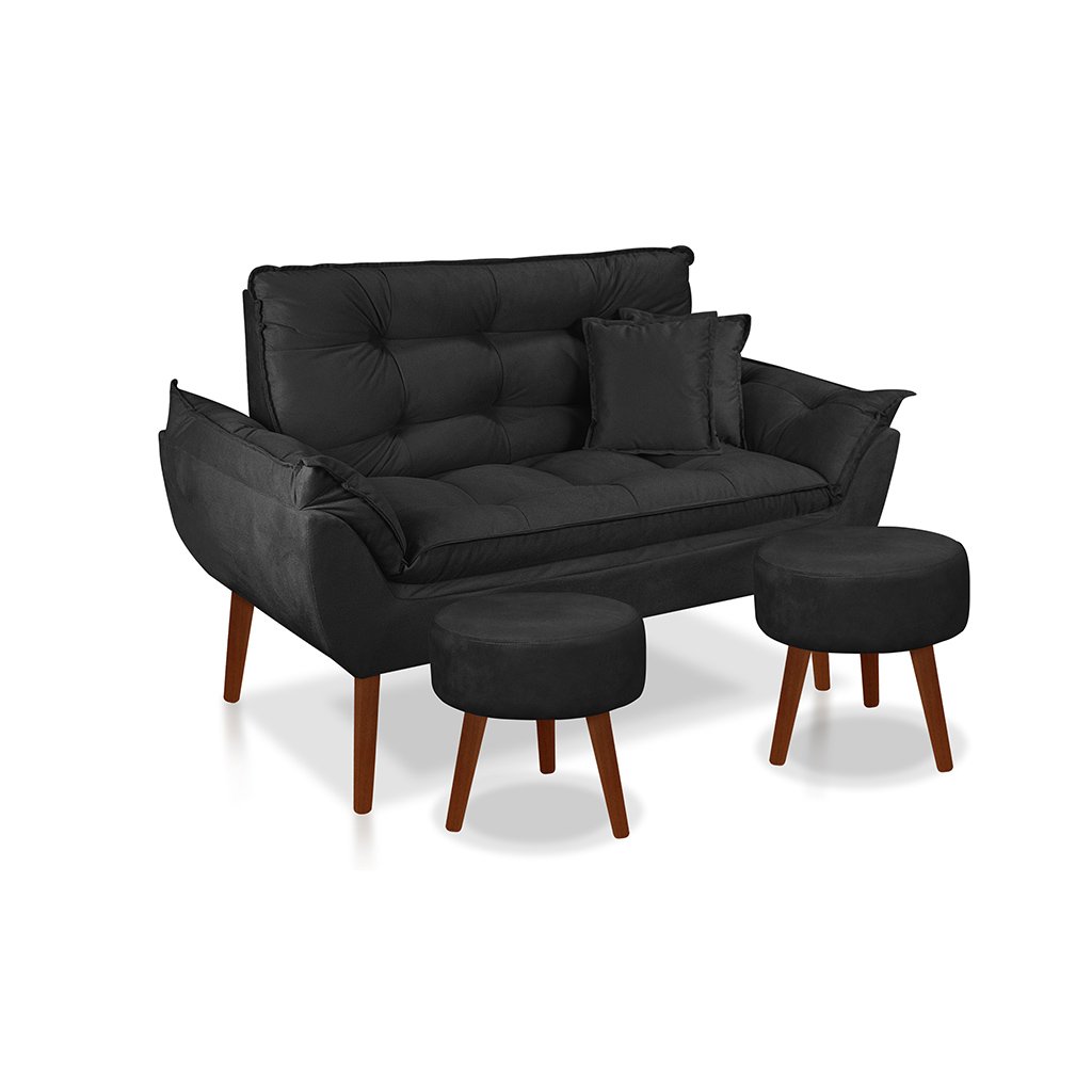 Kit 01 Namoradeira Opala + 02 Puff Redondo + 02 Almofadas Suede