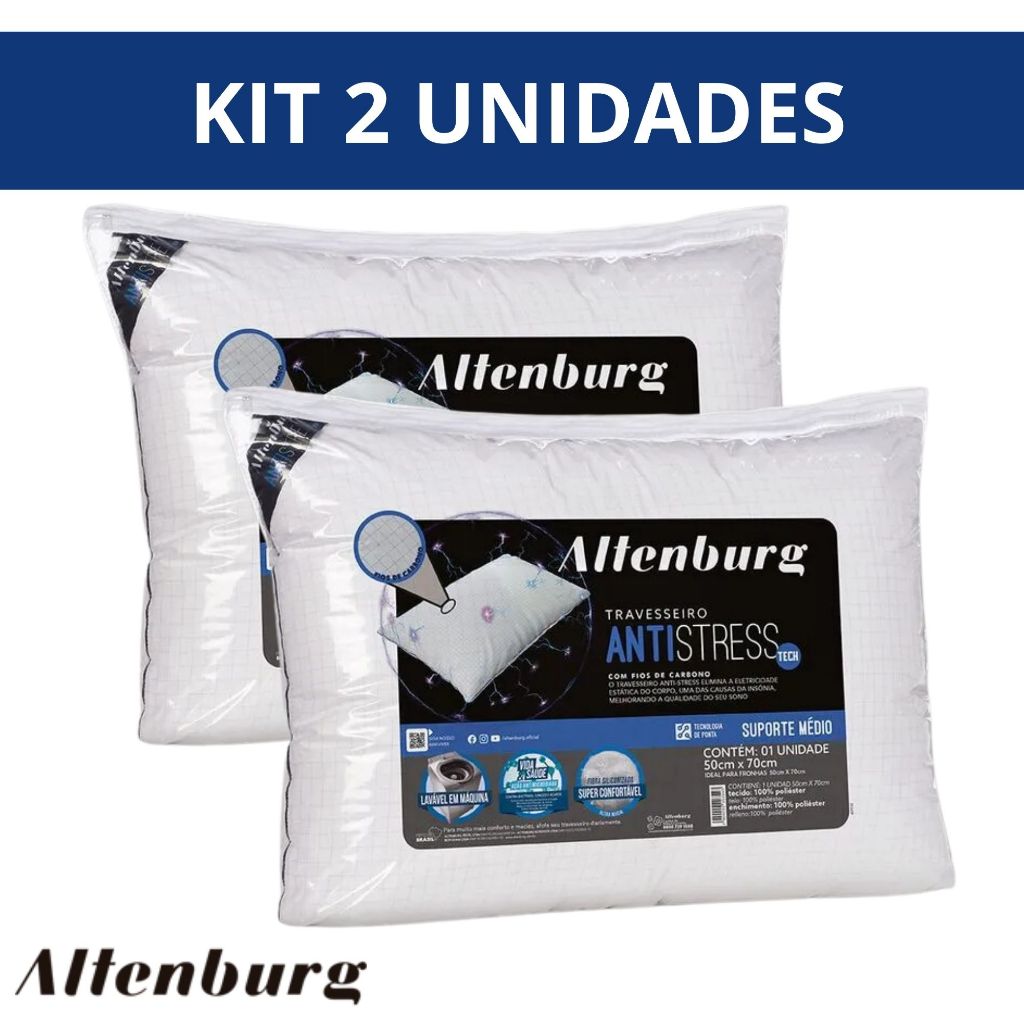 Kit 2 Travesseiros Altenburg Antistress Antialérgico 50cm x 70cm Toque Acetinado Macio Suporte Médio