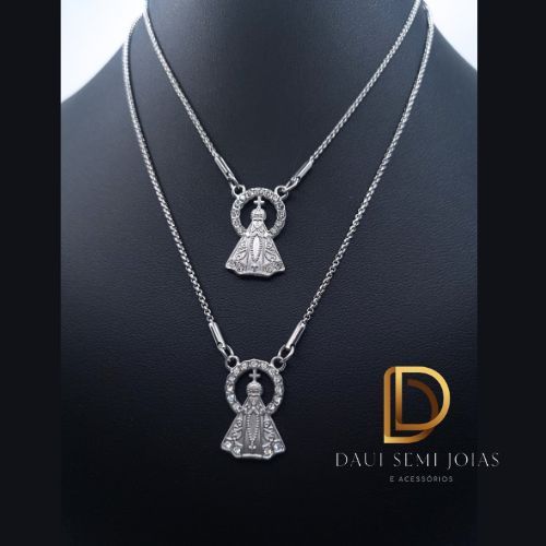 Colar Corrente Cordao Nossa Senhora Aparecida Com Pedras Folheada A Prata 925
