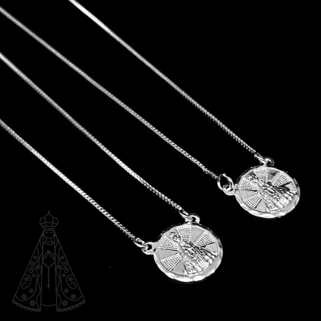 Colar Corrente Santinha Nossa Senhora Aparecida Santa em Prata 925