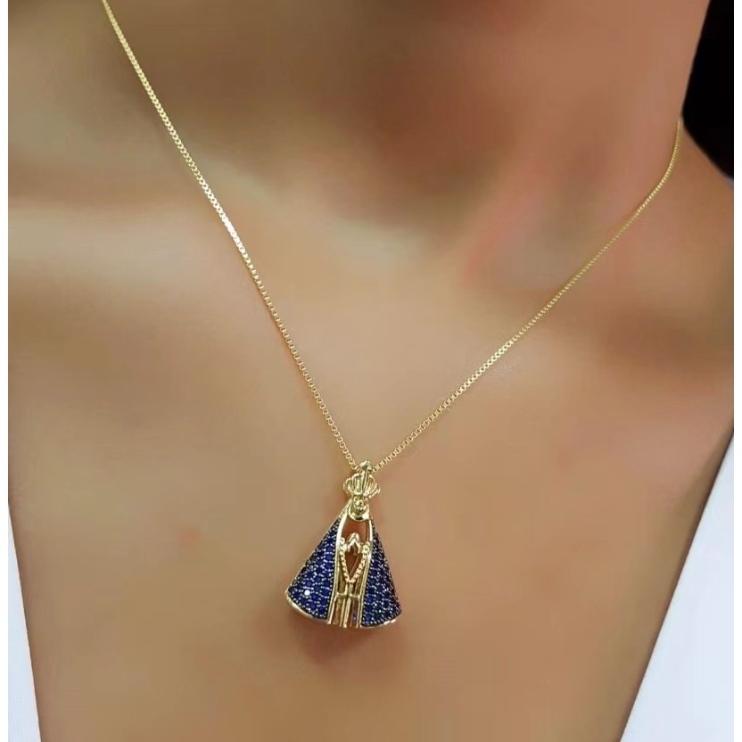 Colar cravejado nossa senhora aparecida com zircônia folheado a prata e ouro