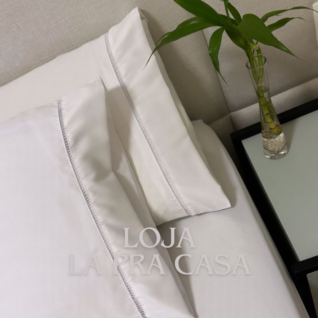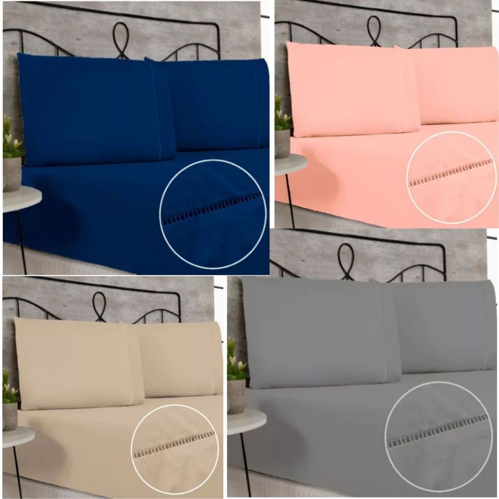Jogo de Lençol Tamanho Casal 03 peças com elástico fronhas com ponto palito micro percal 400 fios