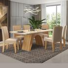 Kit Conjunto Sala de Jantar Mesa Tampo MDF Vidro 210 cm com 8 Cadeiras Marrom Madeira Off White