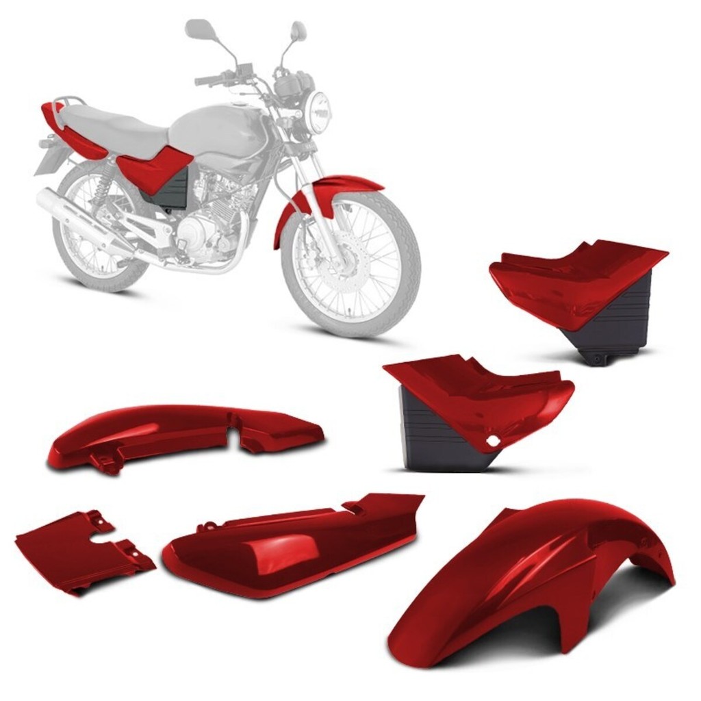 Conjunto Carenagem Pro Tork Cg 125 Titan 2000 2001 2002 2003 2004 Cg 125 Fan 2005 2006 2007 2008 Kit 3 Peças Paralama Dianteiro Rabeta Tampa Lateral (Par)