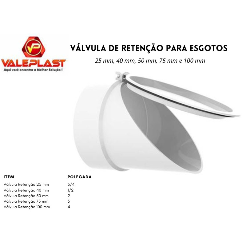 Válvula de Retenção Branca para Esgoto e Azul para Água 3/4, 1/2, 2, 3 e 4 Polegadas c/ Tampa - Valeplast
