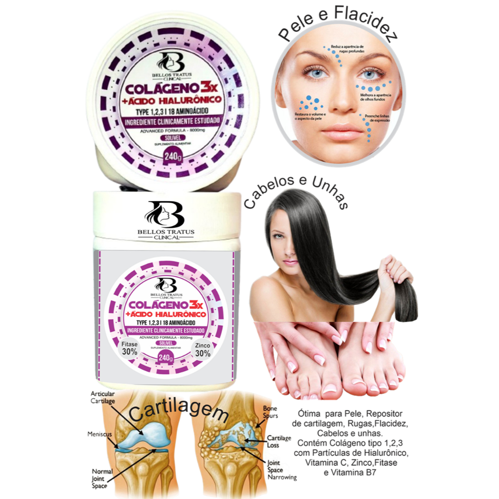 Colágeno tipo 1,2,3 + Hialurônico + Zinco+ Fitase E Vitamina C 240G Bellos Tratus
