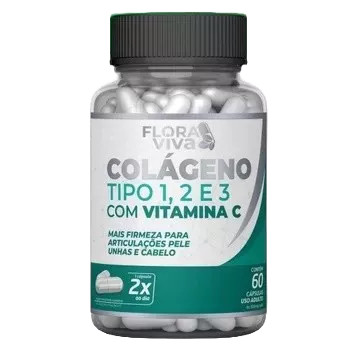 Colágeno Tipo 1, 2 e 3 com Vitamina C 60cps - Flora Viva