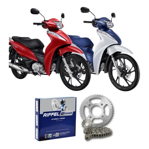 Kit Relação Tração Transmissão Honda Biz 110 125 2005 2006 2007 2008 2009 2010 2011 2012 2013 2014 2015 2016 2017 2018 2019 2020 2021 2022 Original Riffel