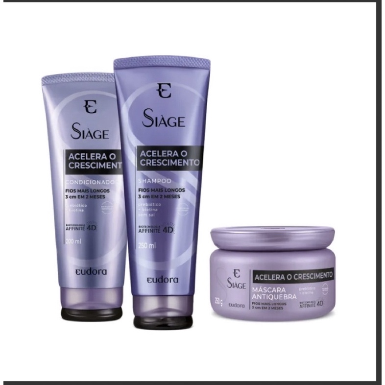 Eudora Siàge Acelera o Crescimento: Shampoo 250ml , Condicionador 200ml ,Máscara Capilar 250g Eudora