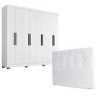 Guarda Roupa Casal Prime 1684 com Pés Reto News Cinza e Cabeceira Luiza 140cm Branco - Araplac