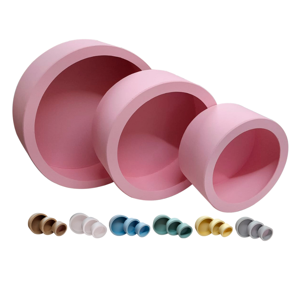 Trio De Nichos Redondo Em Mdf Rosa Bebe Para Quarto De Bebê