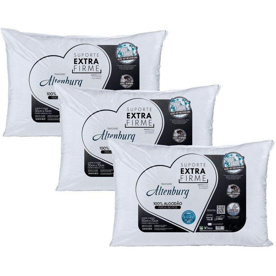 Kit 03 Travesseiros Altenburg Suporte Extra Firme 0,50x0,70m 180 Fios