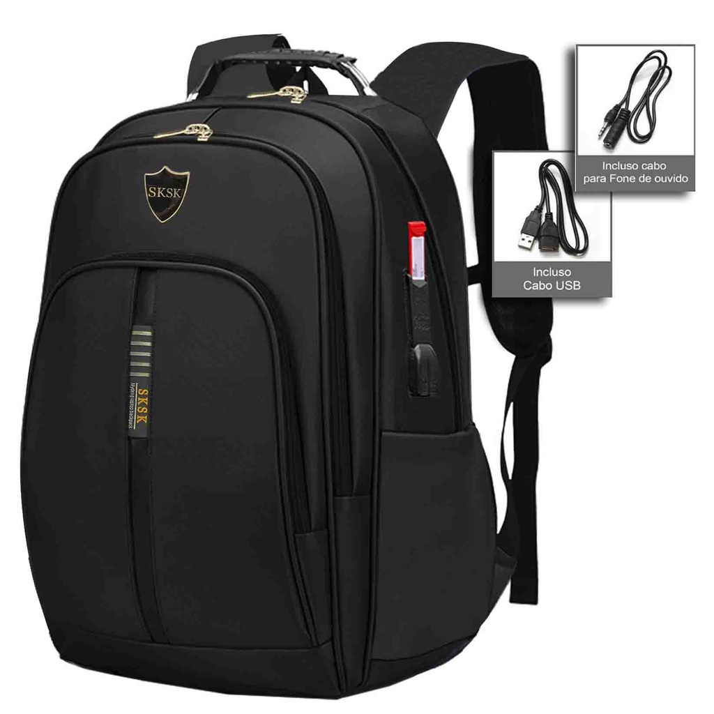 Mochila Masculina Feminina Unissex Resistente à água Com Saída USB Anti-Furto Volta ás Aulas