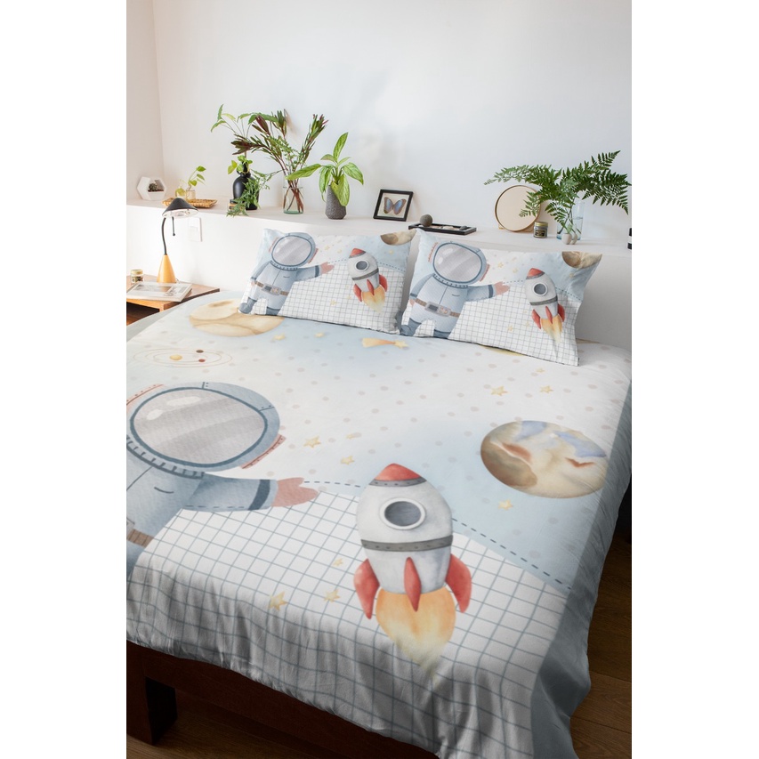 Lençol Solteiro Casal ou Queen 2 e 3 Pç Astronauta Roupa de Cama Menino Menina