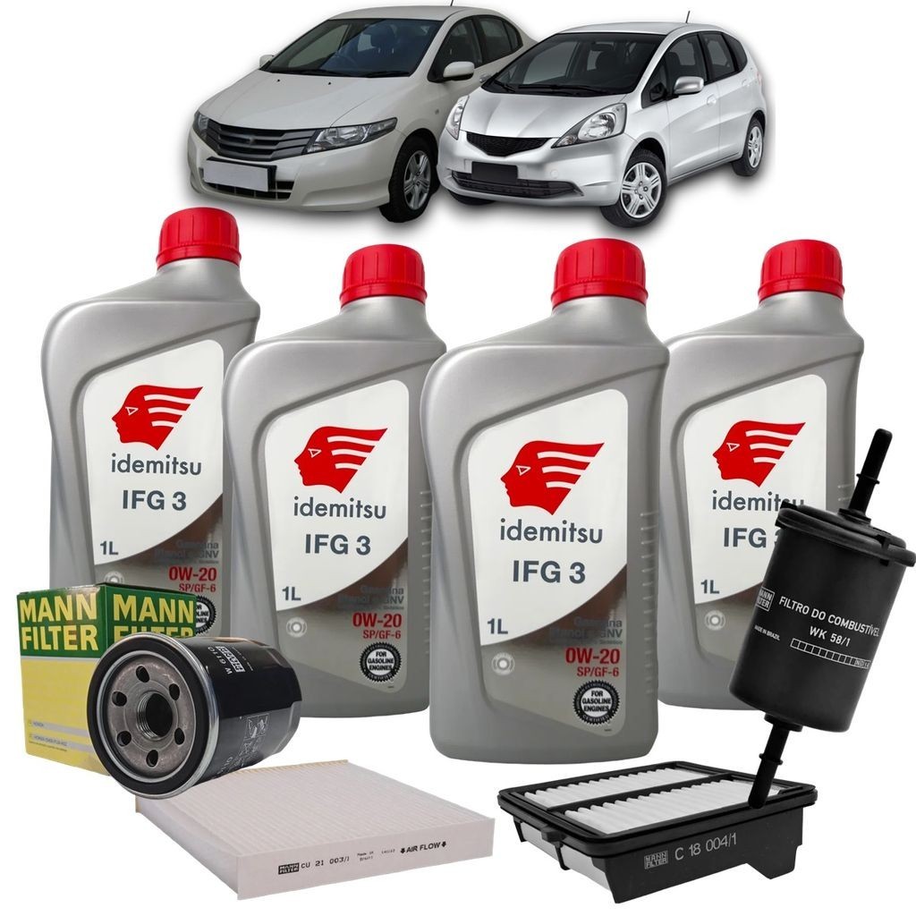 Kit Revisão 4 Litros de Óleo 0W20 100% Sintético Idemitsu + Filtros de Óleo + Combustível + Ar City Fit 2009 até 2014 1.4/1.5 16V Flex
