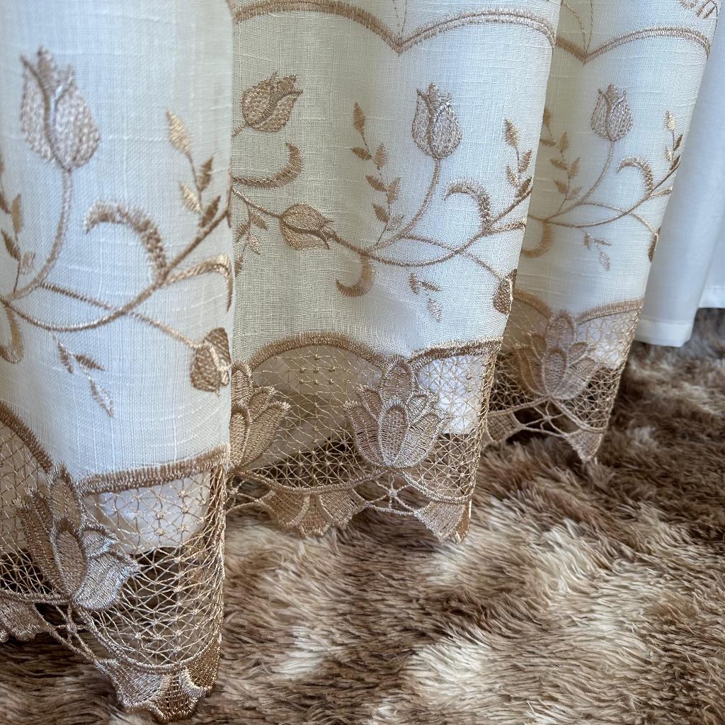 Cortina Alto Padrão Voil Linho Bordado Guipir Com Forro Microfibra P/ Varão 2,00x2,50