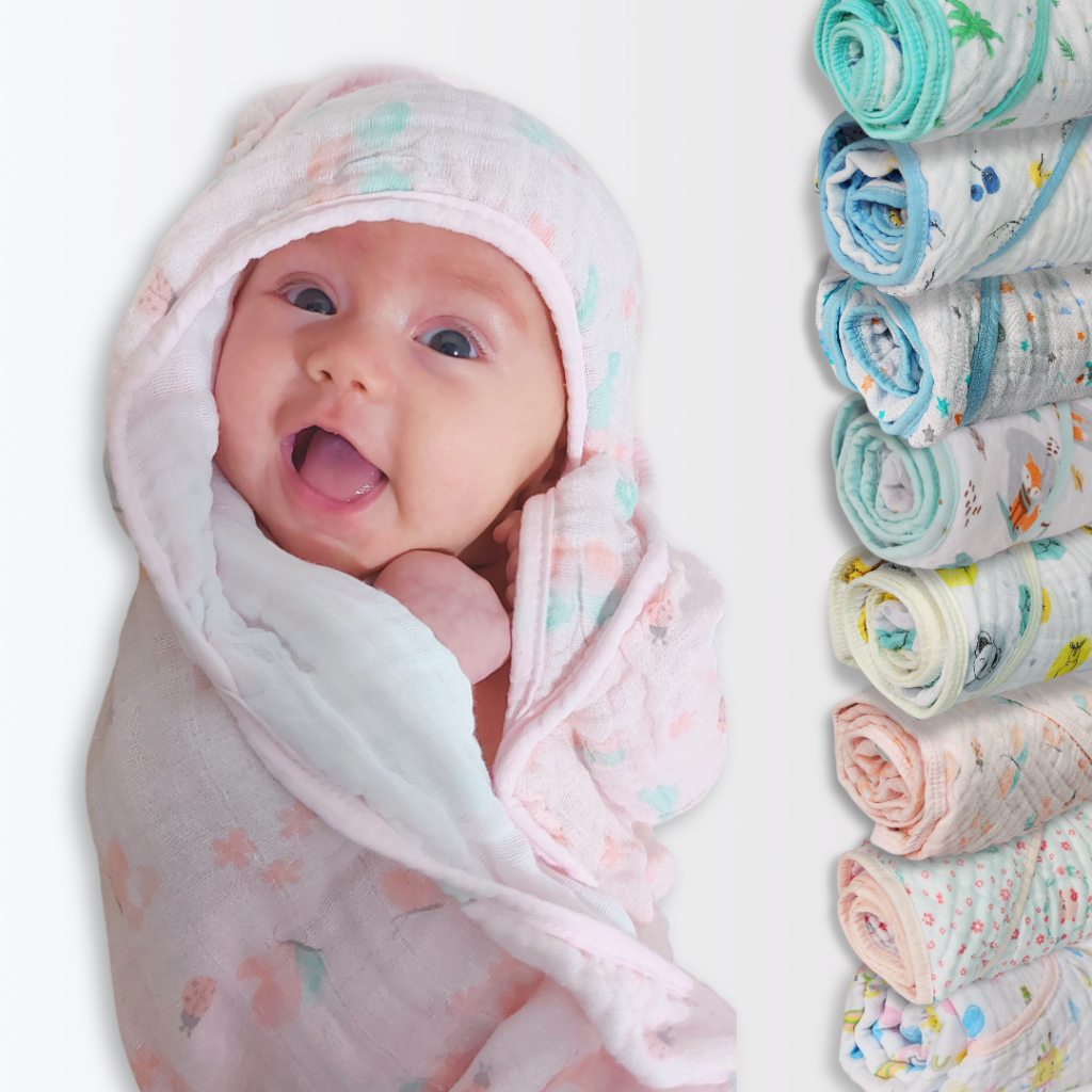 Toalha de Banho para Bebê Tecido Soft Fleece Forrada em Fralda 100% Algodão com Capuz