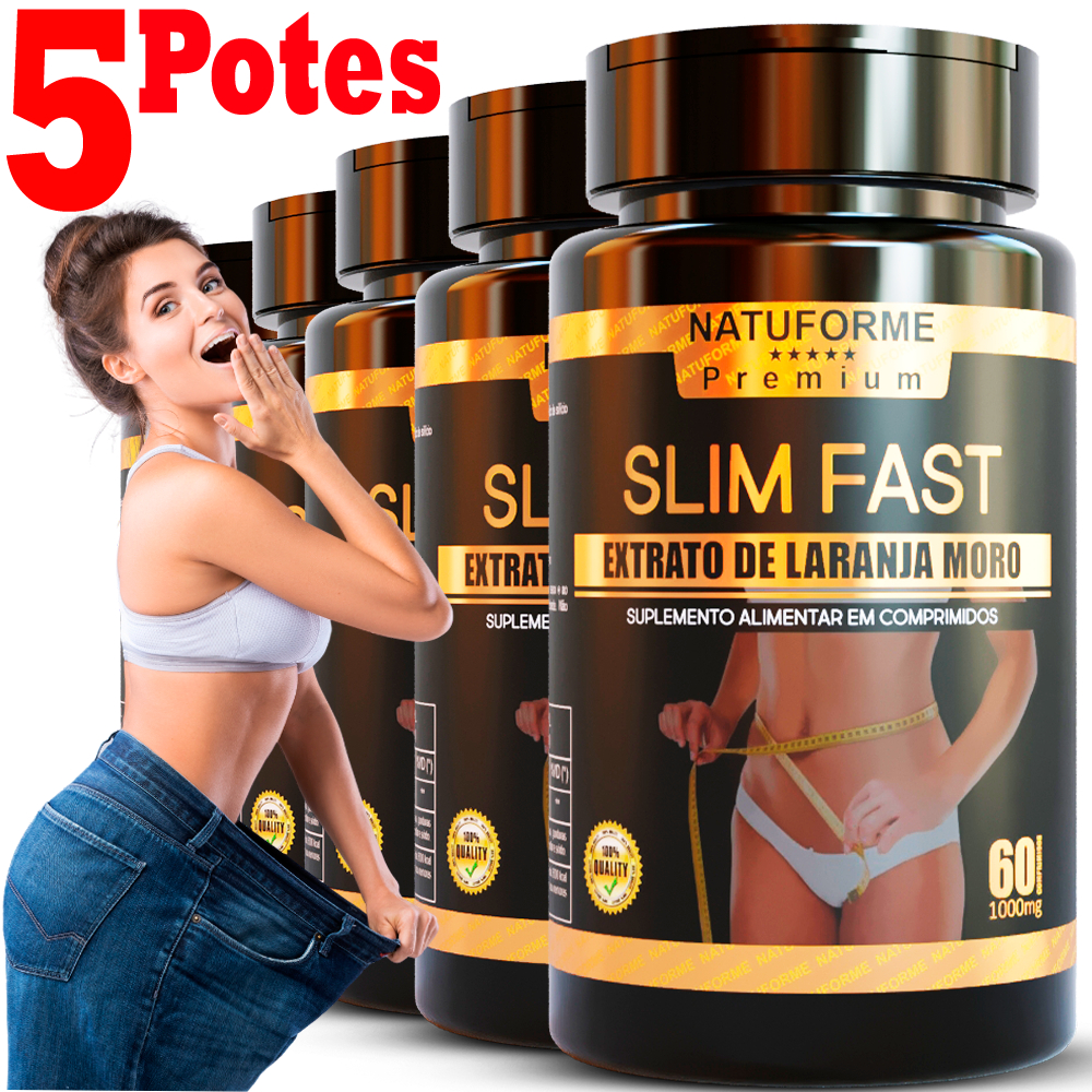 Kit - 5 Potes de Slim Fast - Extrato de Laranja Moro - 60 Comprimidos 1000mg - Natuforme