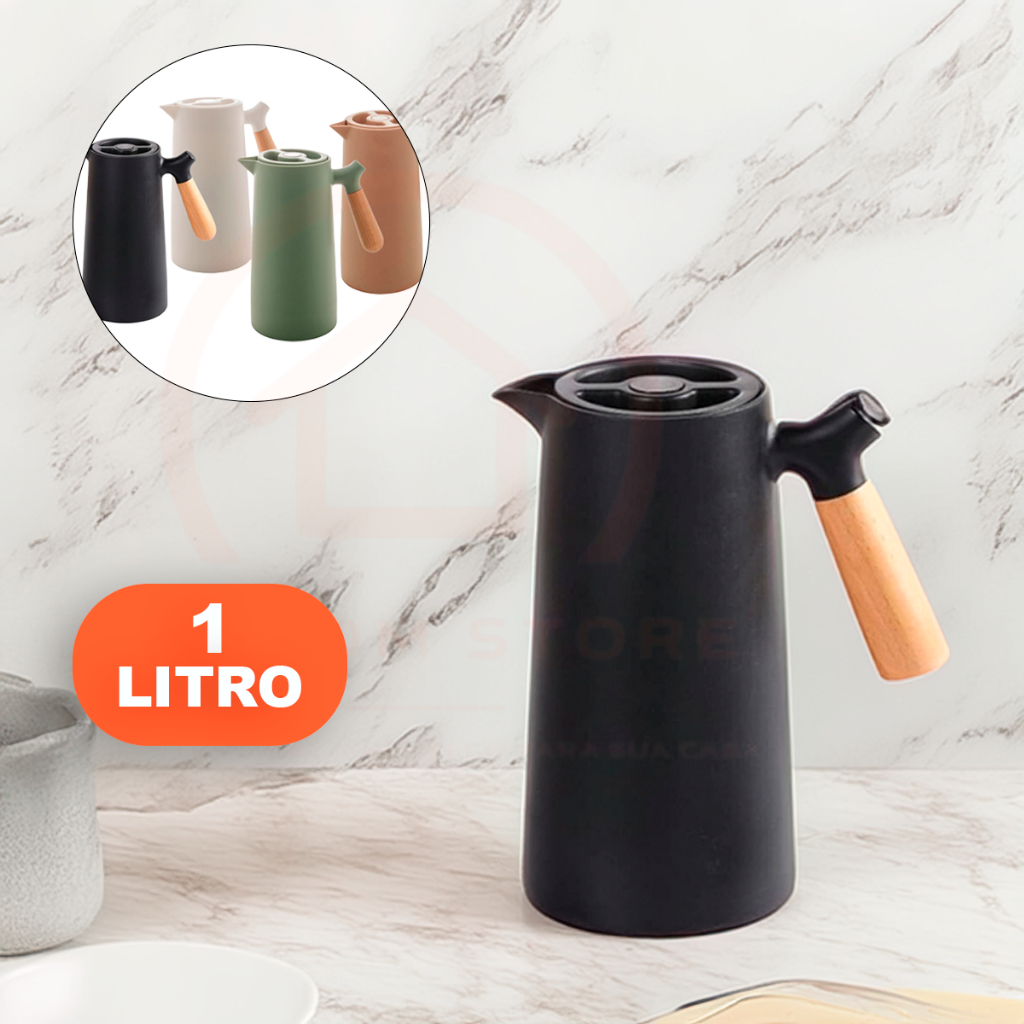 Garrafa de Café Térmica Cabo de Madeira 1 Litro Várias Cores