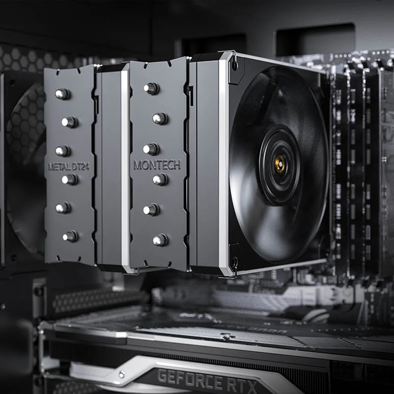 Air Cooler para processador intel i7/i9, AMD AM4/AM5 Montech Metal DT24 6 Heatpipes, High Performance TDP 270W, 120mm