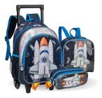 Kit Mochila De Rodinha Foguete Com Lancheira Estojo Duplo - D'PRESENTES