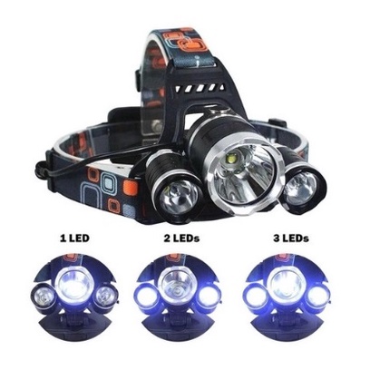 Lanterna De Cabeça Triplo Led Bike Recarregável Profissional Com 3 Leds T6 Cree