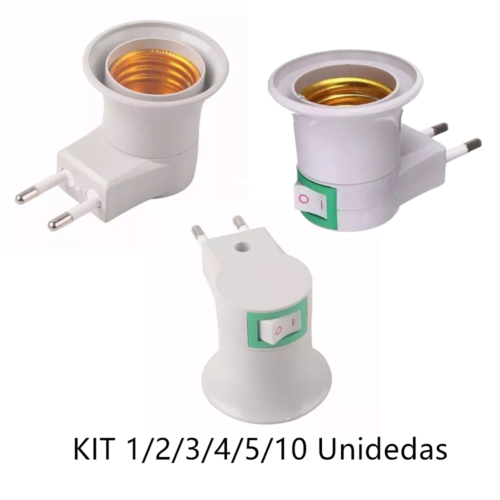 Kit 3/4/5/10 Soquete Bocal Para Lâmpadas Tomada com Botão Chave Liga Desliga E27