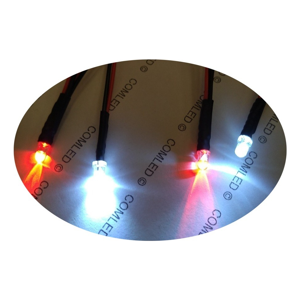 Kit 4 led 5mm para carrinho (2 branco e 2 vermelho) com suporte para 2 pilhas AA e chave liga desliga botão