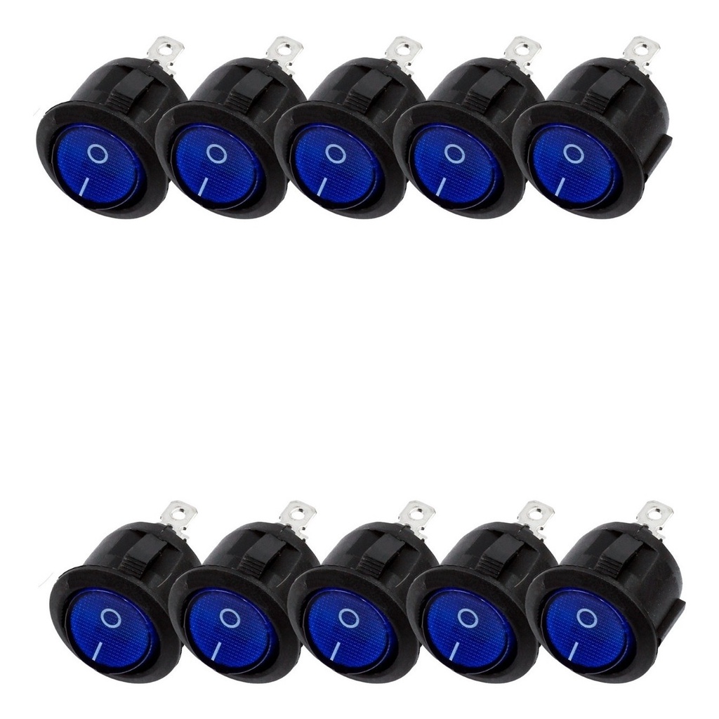 Chave Botão Gangorra Liga Desliga com Led Azul Kcd1-106 - Kit 10 Peças