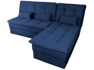Sofá-Cama Casal 3 Lugares Reclinável Penélope com Chaise Esquerdo Veludo Azul
