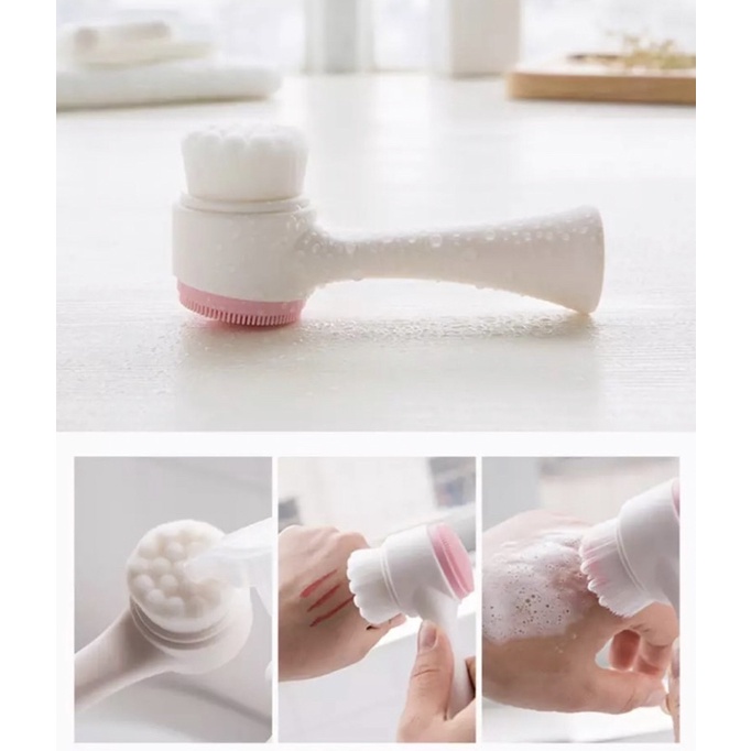 Escova de Limpeza Facial 2 Em 1 Com Cerdas Macias Dupla Face