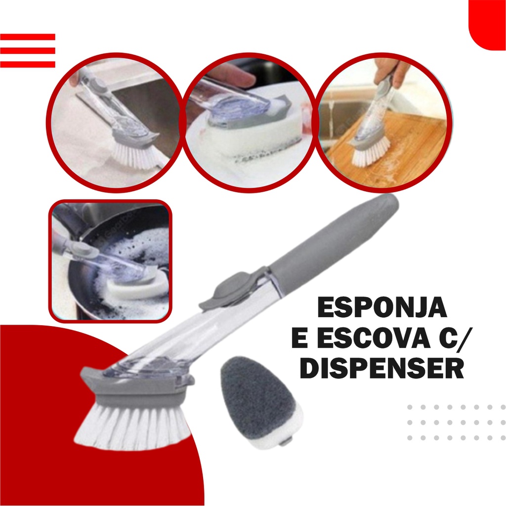 Escova de Limpeza 2 em 1 Dispenser Detergente Mágico Pronta Entrega