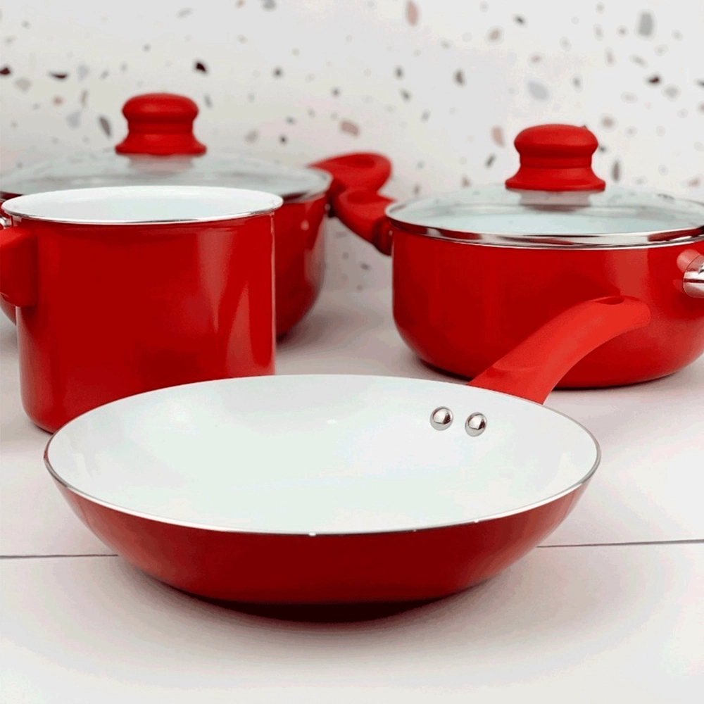 Conjunto de panelas Revestimento Cerâmico Antiaderente com cabo de baquelite vermelho jogo com 4 peças