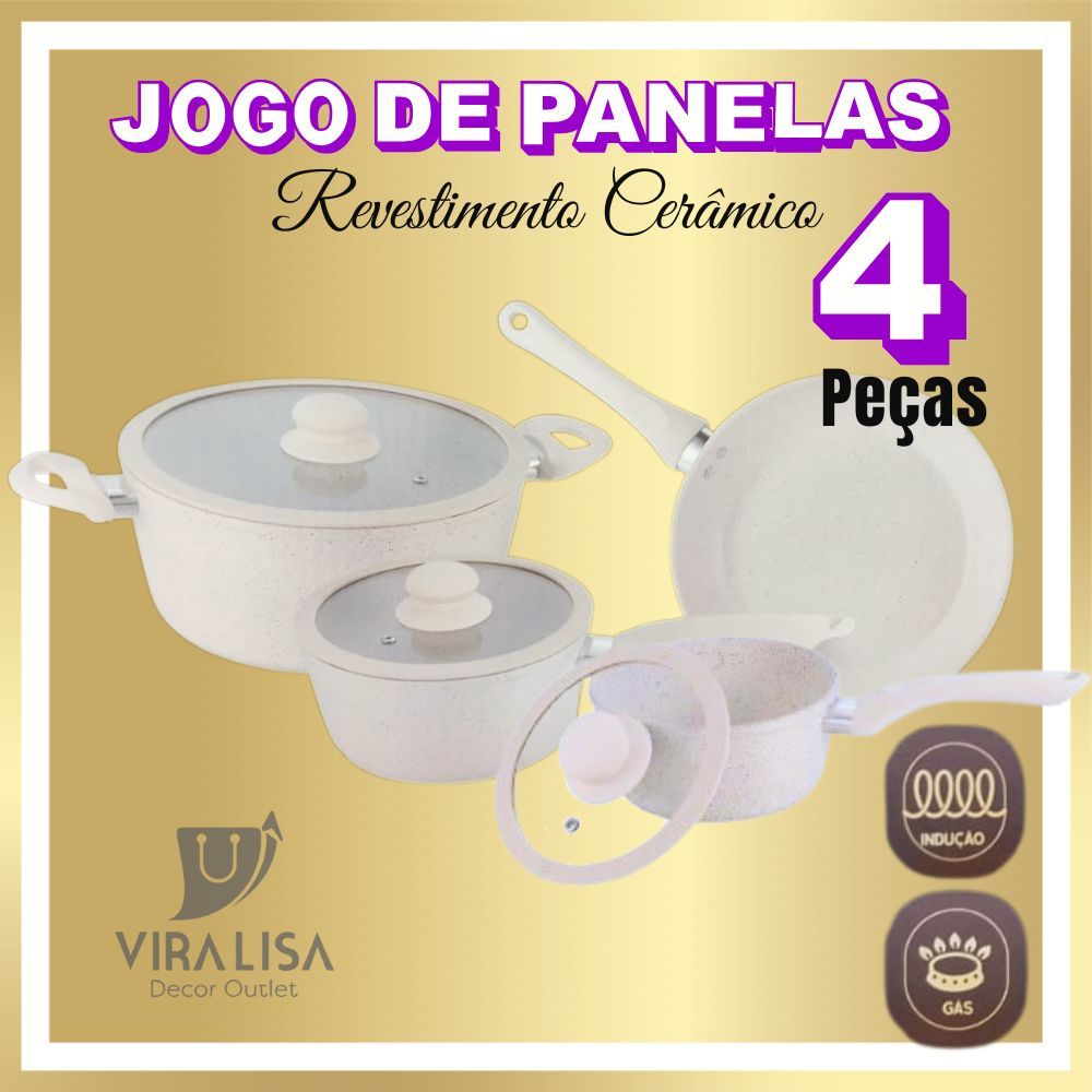 Jogo de Panelas Antiaderente 4 Peças Indução Gás Revestimento Cerâmico Conjunto Cozinha