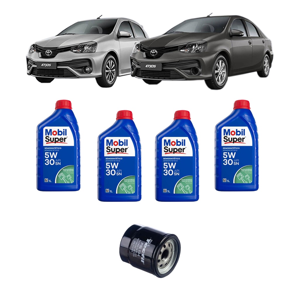 Kit Troca De Oleo e Filtros Etios 1.3 1.5 Flex 5w30 Mobil sintético revisão original Toyota 2012 2013 2014 2015