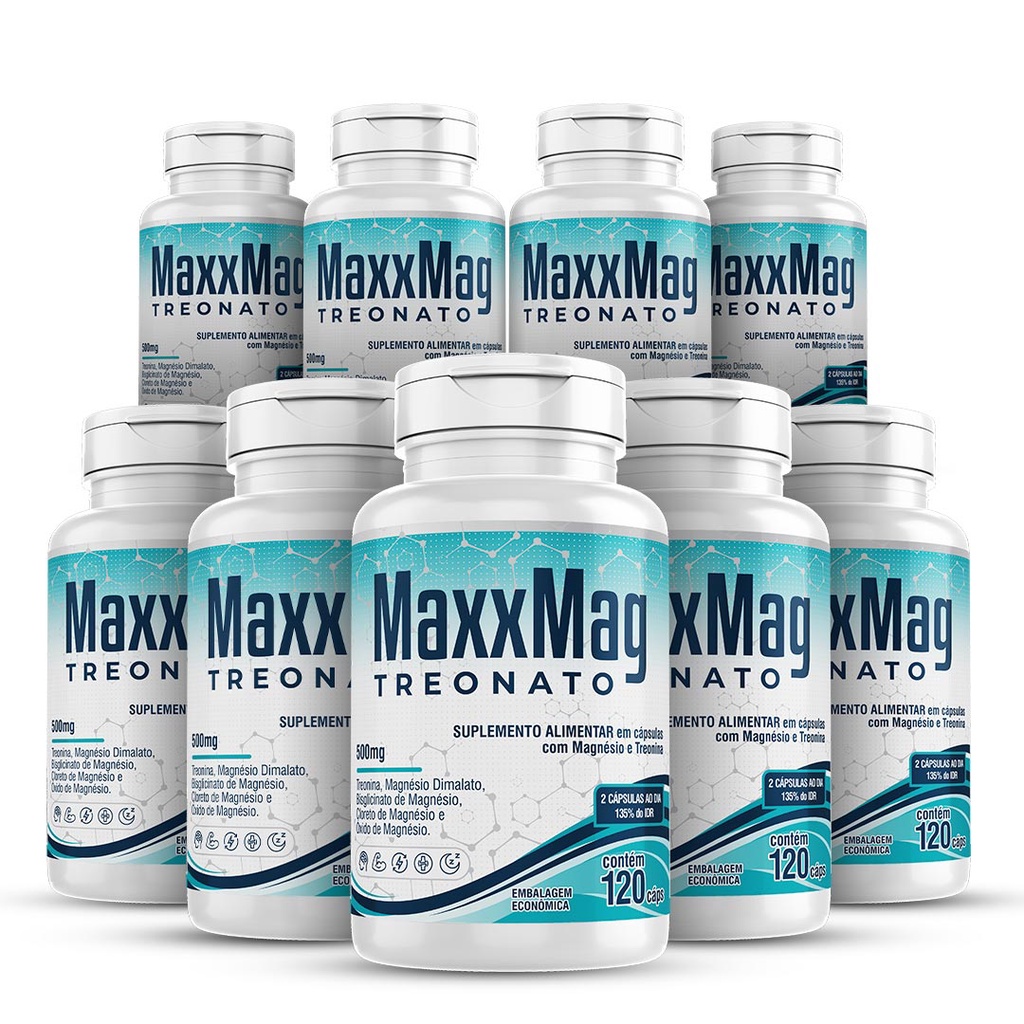 MaxxMag 9x 120 Cápsulas, 5 Fontes de Magnésio: Treonato, Dimalato, Quelato, Óxido e Cloreto, Máximo 2 ao dia, 220mg de treonina na porção