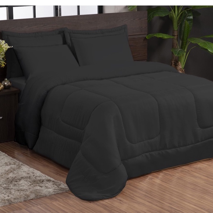 Kit 6 peças para cama Queem conforto edredom + jogo de lençol preto