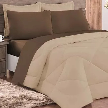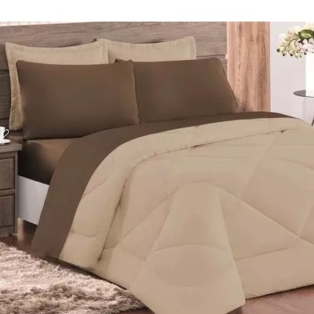Kit Edredom Ternura Casal Dupla Face Com Jogo De Lençol 6 Peças Promoçã0 ! ( CAQUI COM MARROM )