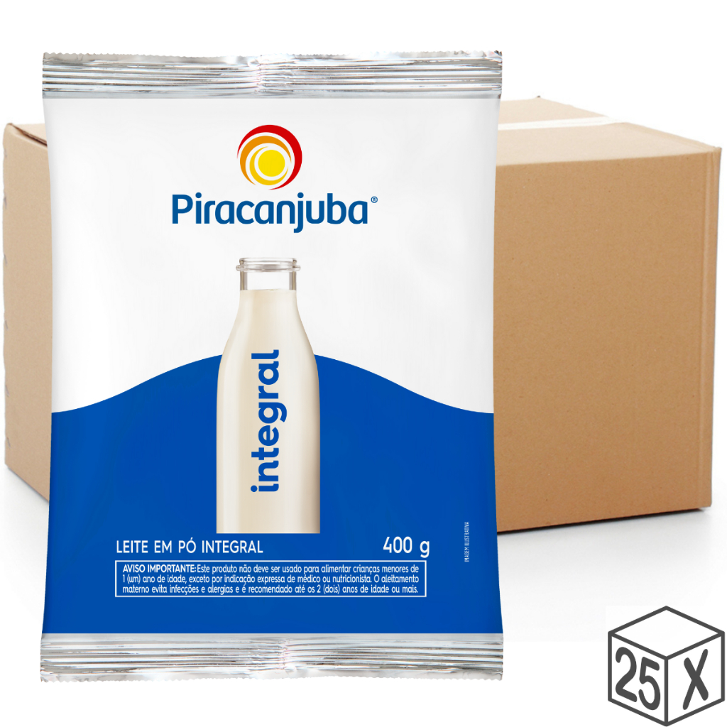 Caixa 25 unidades Leite em Pó Integral Piracanjuba 400g - Kit com 25x400g