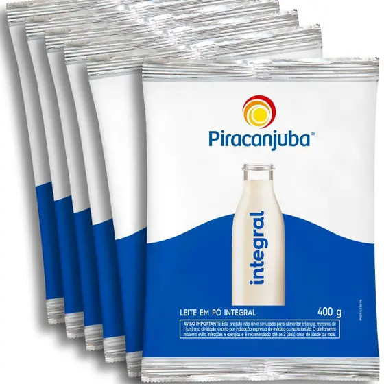 Leite em Pó Integral 400g Kit com 6 unidades - Piracanjuba