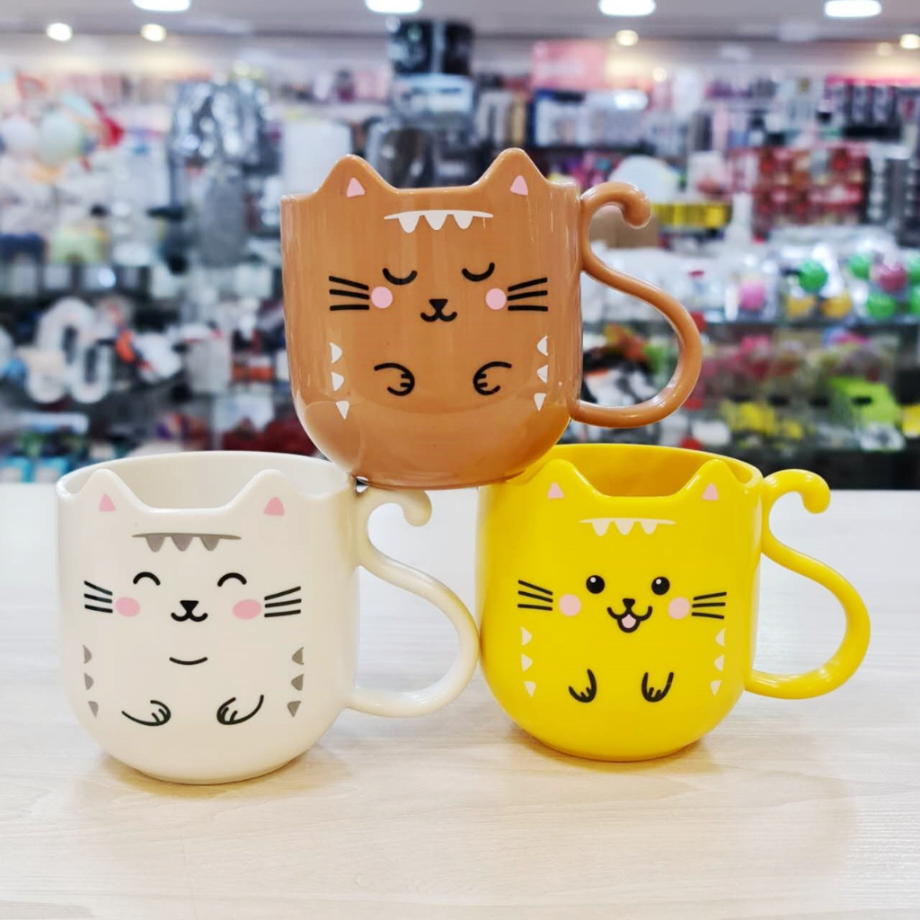 Copo de gato fofo plastico resistente branco/ amarelo/ marrom 200ml/caneca infantil/presentes