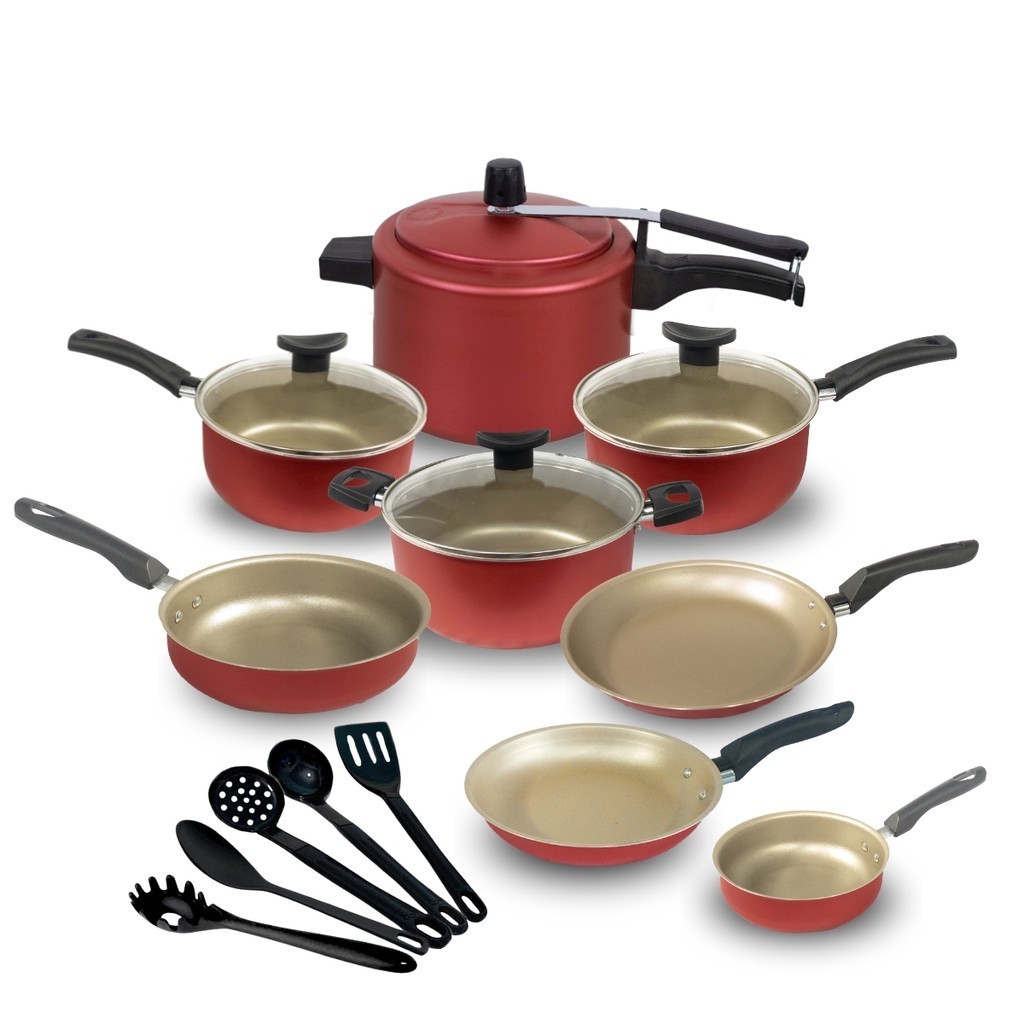 Kit Jogo de Panelas 13 Peças Completo Antiaderente Teflon Com Panela de Pressão 4,5L