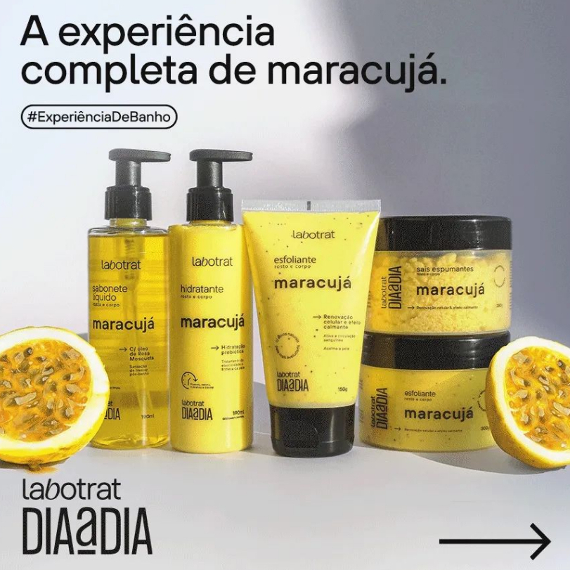 💛 Kit Labotrat Linha Dia a Dia de Maracujá (Esfoliante, Hidratante, Sabonete Líquido e Sais)
