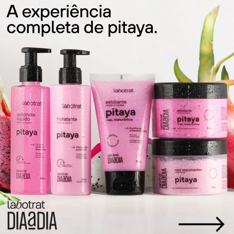 💗 Kit Labotrat Linha Dia a Dia de Pitaya (Esfoliante, Hidratante, Sabonete Líquido e Sais)