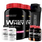 Kit 2x Whey Protein Waxy Whey Pote 900g + BCAA 100g + Power Creatina 100g + Waxy Maize 800g + Coqueteleira 600 ml - Aumento de Massa Muscular