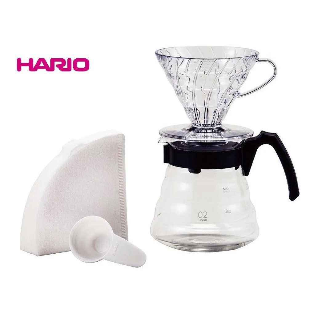 Kit Cafeteira Manual Hario V60-02, Preta de Filtro - Kit Jarra + Tampa + Suporte Filtro + Colher Dosadora + 40 Filtros