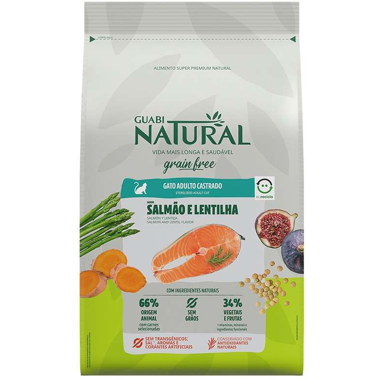Ração Guabi Natural Grain Free Para Gatos Adultos Castrados Sabor Salmão e Lentilha 7,5kg