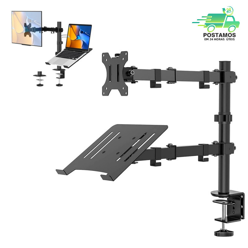Suporte Duplo Notebook e Monitor Articulado com Bandeja para Mesa - PCYES PLMSMN1A