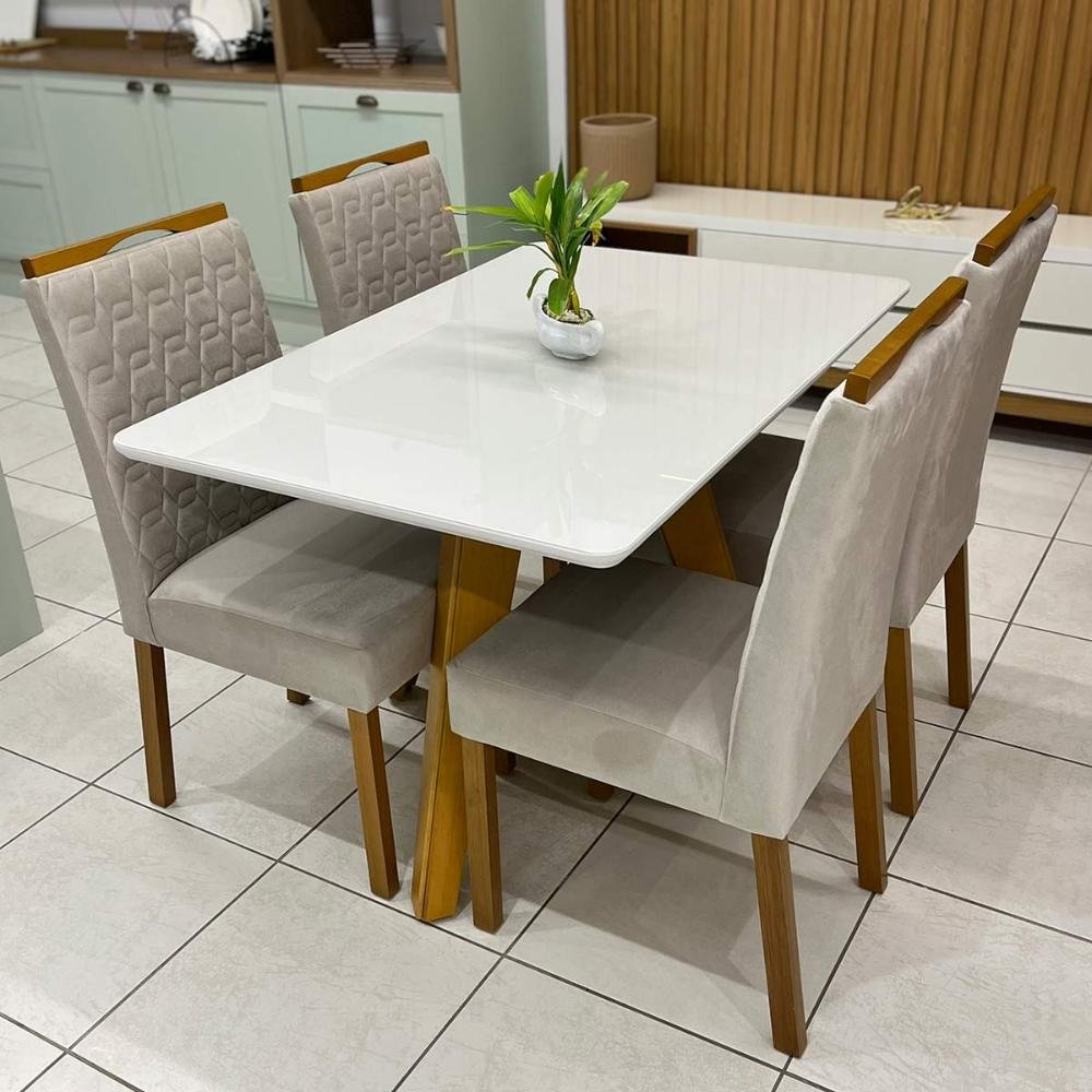 Conjunto Mesa de Jantar Tampo MDF 1,60m e 4 Cadeiras Tiê CabeCasa MadeiraMadeira